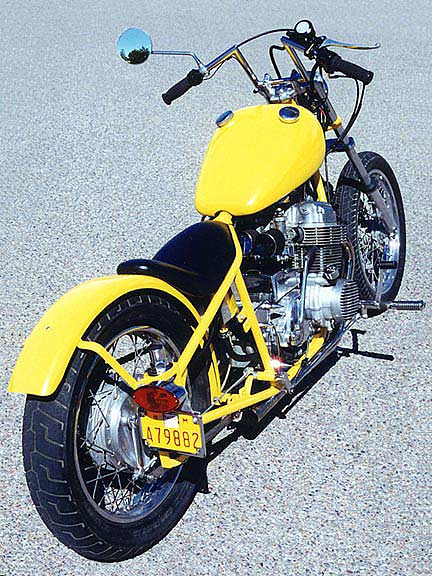 Here are some pics of my 1974 chop with a Amen Savior frame. It would be great to see it in this great gallery. This is my first CB750 and it was a blast to do. I fabricated many items including seat, headlight bracket, taillight bracket, fender brace and tank mounts. I also painted it. I couldn't have done it without the great bros on Hondachopper.com. Mick