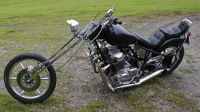 I traded a Harley rolling chassis for the bike you see here in the picture. Found this bike on the HORSE ...then found out it was in Maine. Then i found out the owner was a truck dispatcher, and that for a hundred bucks to the driver would deliver it...SOLD!!! Same day i got it the driver slip me the paperwork and i lost it in the parking lot. There was 4 of us combing the parking lot, and well it came back to me all run over & tore a lil. Before i got it home some guy in a pickup ( chased me down ) offered me a quick $1000 for the chop. I kicked myself in the ass the last time I let a full chop get away. This one's a keeper if ever I saw one, Amen frame, Santee coil box, Amen oilbag, Harley sofltail seat, Drag Specialty gauges, not real sure what the frontend is for sure??? Well before this turns into a best seller or book I'll sign off. LeeRider