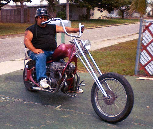 This is my Baby! I picked it up three weeks ago for $600. It's a runner and the K2 is fully chromed. I hope to fully restore it to it's past glory in the near future. I think it's a Saviour frame but I get all kinds of names from different sources. One fellow calls it a sprung hardtail. Any insights as to what it started life as under all that Bondo? Kenneth Carr