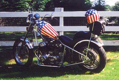 I bought it for $350 from a guy in Tenn. It was in pieces when I got it. I have been working on it off and on for about 5 years now. Its been about 12 different colors and styles until I made up my mind to go with what I liked. I thought I would get a lot of flack from some of the die hard folks out there when I went with the red white and blue theme, but to my joy everybody loves it. I rode it on the