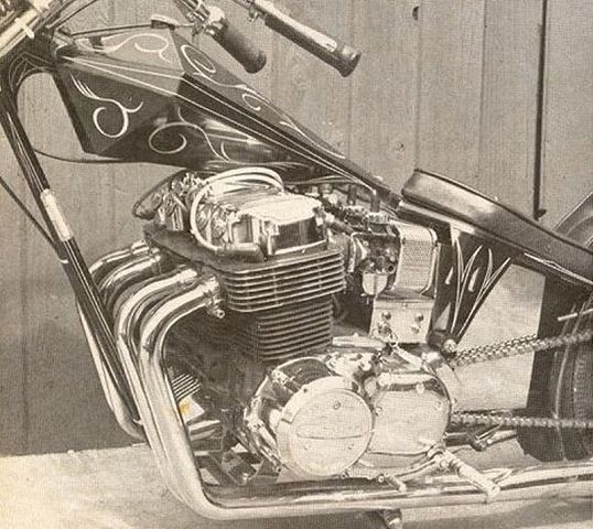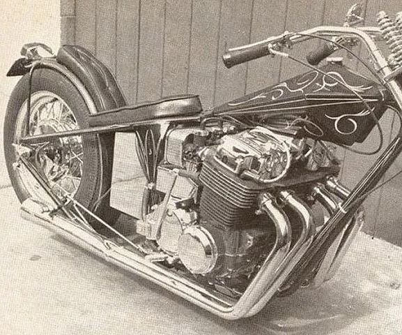 Here is something I ran across on the net that I thought might interest some of you and should maybe be a part of the 750 history we have here in Hondachopper.com gallery of stars. These old black and white pics are an example of a CB 750 built pretty much entirely from Arlen Ness parts. I'm not sure if Arlen built it or not, but it sure is a Honda with his influence to it from back in the day.